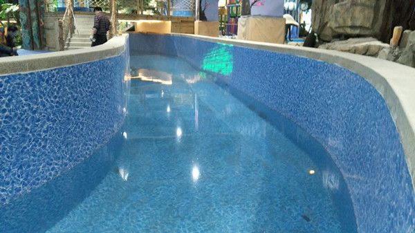 先給大家說一下泳池膠膜的規格,就其厚度來講,現在有0.6mm、0.9mm、1.2mm、1.5mm、2.0mm。基本上是這樣的厚度,當然還有比0.6mm更薄的,但是使用在類似游泳池這樣的場所,太薄的就不很合適了,建議0.9mm以上的即可,這個需要根據自己投資成本確定,市場上使用以1.2mm和1.5mm使用量為多。那么2.0mm厚度的使用是不是會更好一些呢?不是的。因為我們在拼接泳池膠膜的時候,接縫的地方采用相互疊壓5cm然后使用工具進行熱熔拼接在一起的,如果材料本身太厚,那么接縫的位置容易產生翹邊,翹邊太高的話容易劃傷游客的腳丫,所以我們不建議客戶選擇使用太厚的膠膜。一般的選擇使用1.5mm的即可。拼接的時候接縫也不會纏上很高的翹邊,不至于出現劃傷游客腳丫的事件。